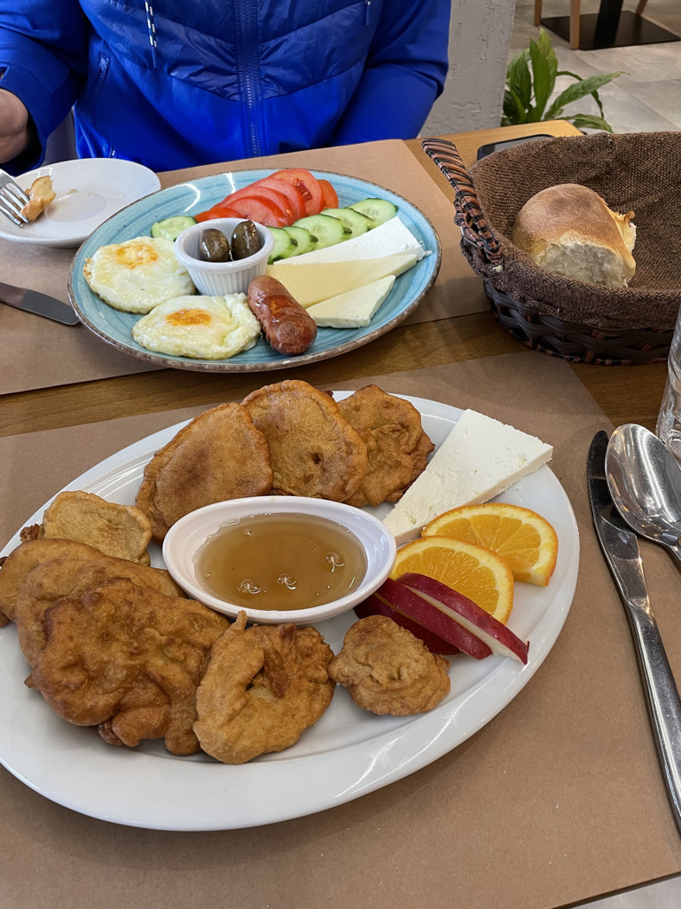 We went out for brunch one morning, and I tried these Albanian pancakes, which were delicious! Thick and chewy, dipped in honey! All this food and two fancy coffees. We left full and I think only 13 euros poorer than when we went in.