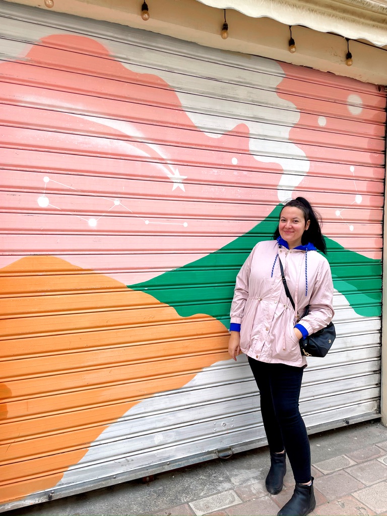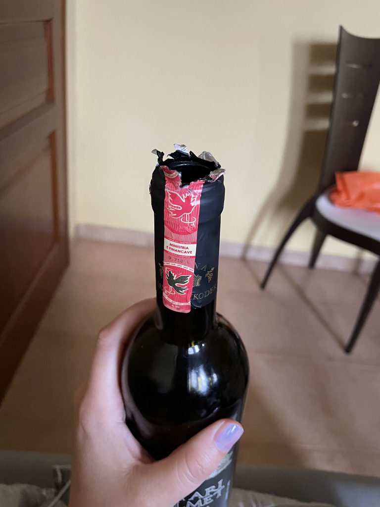 First I want you to see this beautiful angel next to a mural she likes. Then I want you to see how she opens wine. One minute she’s looking all cute and matching the wall, and the next she’s opening wine like a raccoon trying to break into a cyber truck looking for trash. I was shaken to the core until the wine started to kick in and take the edge off.