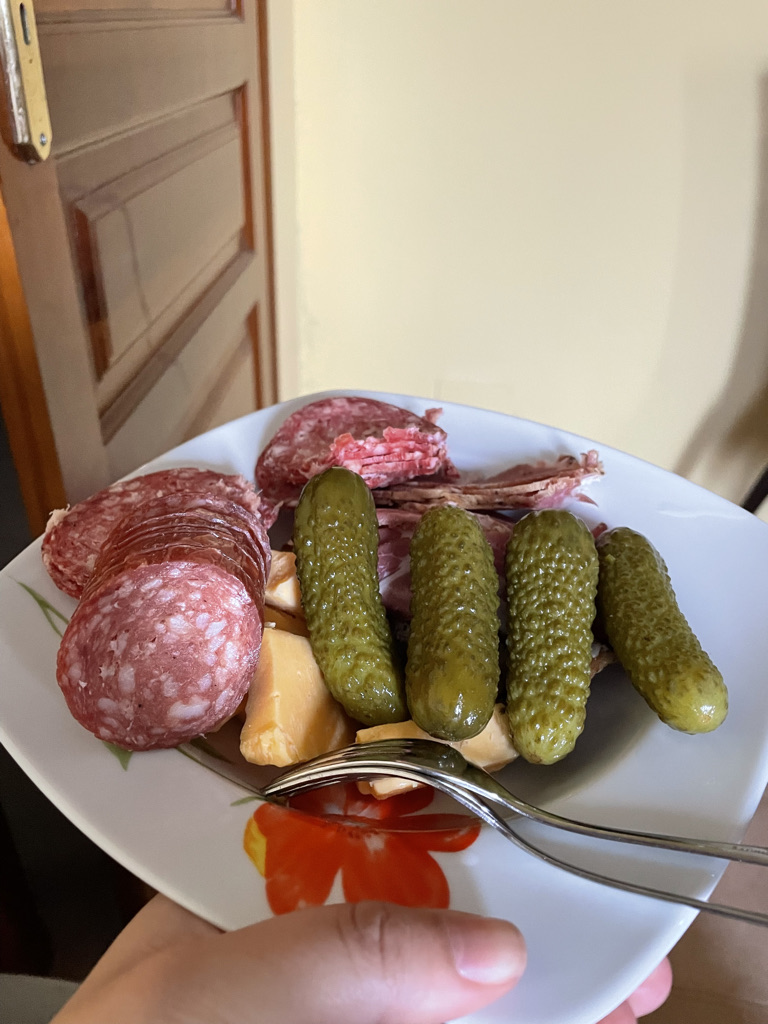 Olya is very good at making delicious snack plates. Ask her about the time that her purse was really heavy. Spoiler alert: Her grocery bag was full so she put a whole jar of pickles in her purse. These pickles are not on my approved pickles list. Give me dill or give me death. If a bitch wants a dill pickle around here, she has to make it herself.