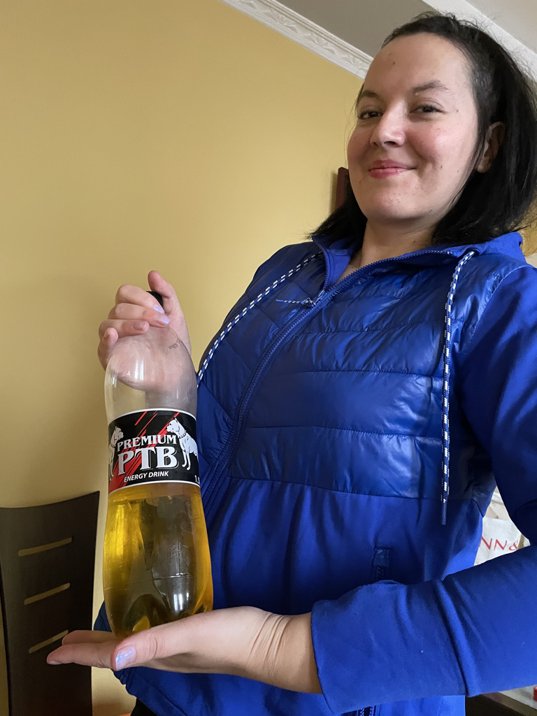 Olya didn’t have a coffee maker, but she would offer you a mug of the finest Albanian energy drink, served out of a 1.5 liter bottle. I’m not naming names, but I have it on good authority that if you accidentally drink a whole liter and a half of pit bull energy drink, you will not feel good.